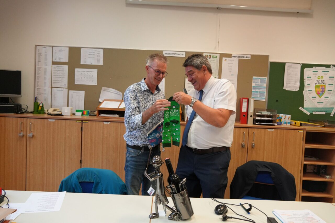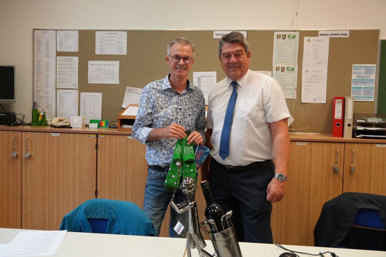 Mit September 2022 gab Mag. Christian Gollonitsch die Administrationsleitung ab und übergab sie geordnet an seinen Nachfolger, Kollegen Mag. Dr. Markus Duschek, den er in der Übergangszeit mit großem Engagement unterstützte. Mit Ende Juni 2025 trat er nun endgültig in den Ruhestand und wir sagen danke für die Arbeit an unserer Schule, danke für seine vielen unbezahlten Stunden und ganz besonders danke für seinen Teamgeist und seine ganz persönliche sympathische Art.