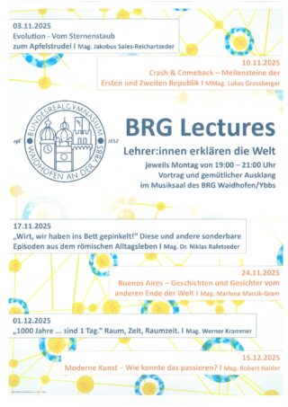Am Montag, 3. November 2025, startete die von Kolleginnen und Kollegen des BRG Waidhofen an der Ybbs organisierte Reihe der „BRG-Lectures – Lehrer:innen erklären die Welt“ mit dem ersten Vortrag des Initiators Mag. Jakobus Sales-Reichartzeder.