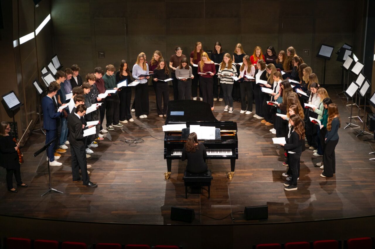 Ein besonderer Höhepunkt des Abends war der Auftritt des Absolvent:innenchors unter der bewährten Leitung unserer bereits pensionierten Musikprofessorin Mag. Anita Auer. Es ist schön zu sehen, wie eng sich viele ehemalige Schüler:innen auch Jahre nach ihrer Schulzeit noch mit dem BRG verbunden fühlen. Im Anschluss überzeugte ein Schüler:innenchor der höheren Klassen mit weiteren eindrucksvollen Beiträgen. Für die Gestaltung des Programms zeichneten die Musikprofessor:innen unserer Schule verantwortlich: Mag. Anna-Sengschmid-Zambal, Karl Schaupp, Mag. Marlene Marcik-Gram und MMag. Marianne Vlcek. Im Mittelpunkt des Konzertabends stand das gemeinsame Musizieren, das eindrucksvoll zeigte, wie vielfältig das BRG ist und dass Musik an unserer Schule nicht nur unterrichtet, sondern auch mit Begeisterung gelebt wird.