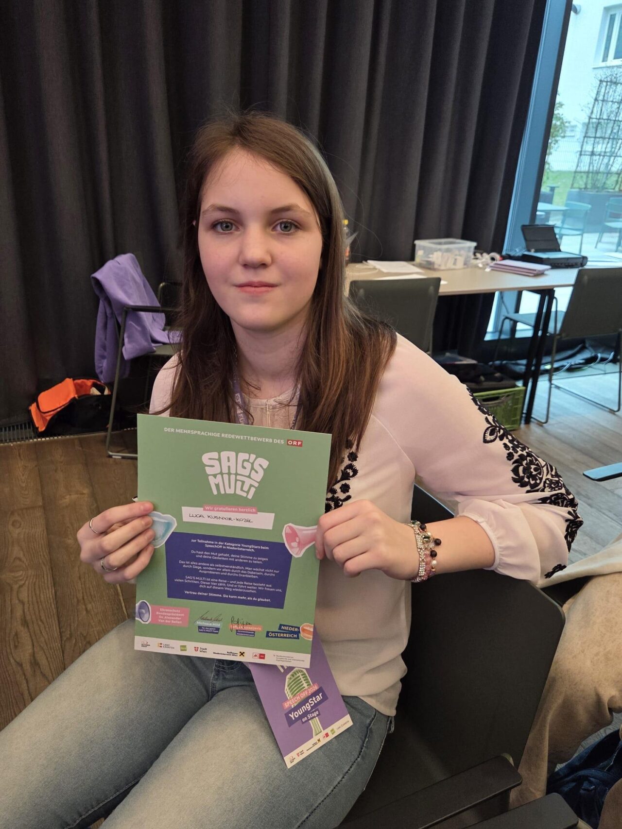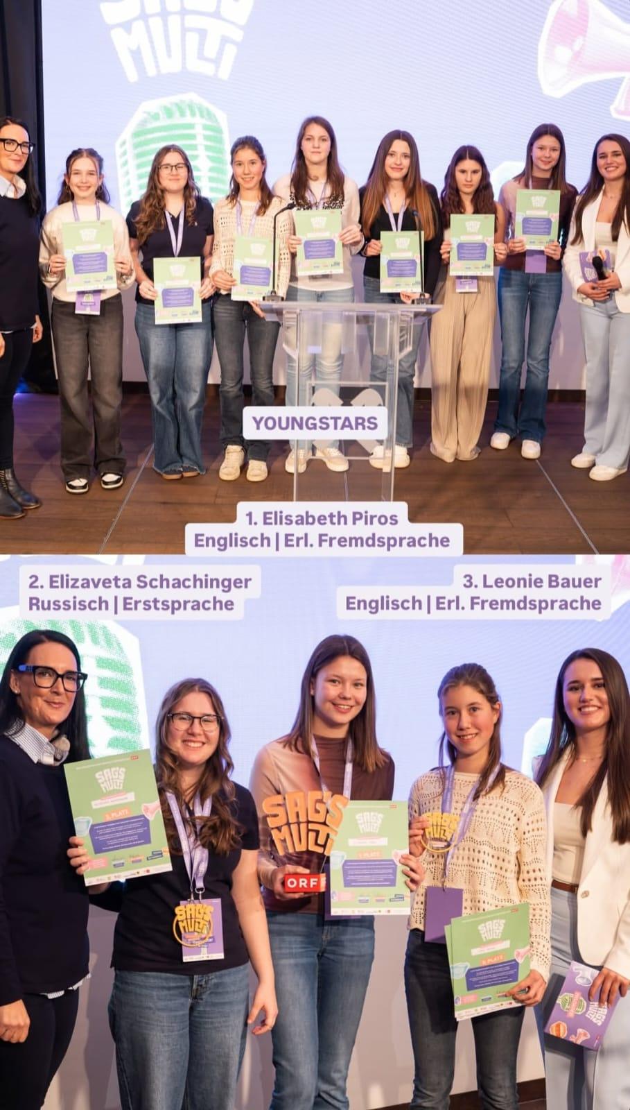 In der Kategorie „YoungStars“ (7. + 8. Schulstufe) belegte die BRG Waidhofen-Schülerin Elizaveta Schachinger mit ihrer Rede auf Deutsch und Russisch zum Thema „Gerechtigkeit“ den hervorragenden 2. Platz. Taizan Yamada, der erst seit einem halben Jahr Deutsch lernt, beeindruckte das Publikum vor Ort mit seiner erfrischenden Rede zum Thema „Meine Generation“ in Deutsch und Japanisch. Der Gastschüler aus Japan besucht das BRG Waidhofen seit September 2025. In seiner Rede, die mit dem 3. Platz ausgezeichnet wurde, sprach er über die Chancen und Möglichkeiten für die junge Generation im 21. Jahrhundert und meinte dazu in Hinblick auf zukünftige Herausforderungen: „Jede Generation wird auf ihre eigene Weise geprüft! Die Frage ist nicht, ob wir stark genug sind wie früher, sondern ob wir klug genug sind, mit der Freiheit von heute umzugehen!“