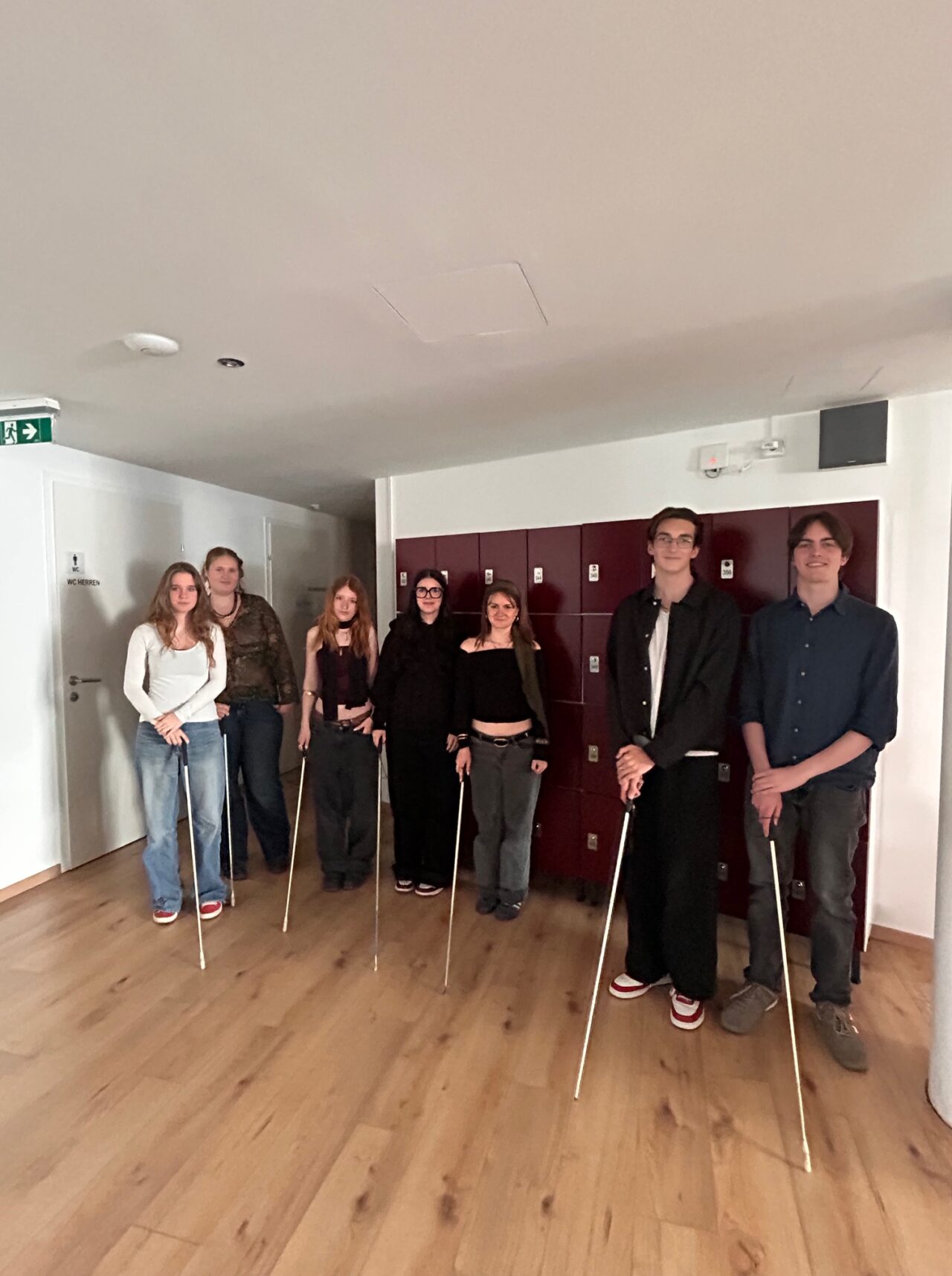Anschließend stand ein Perspektivenwechsel der besonderen Art auf dem Programm: Beim Erlebnis „Dialog im Dunkeln“ begaben sich die Teilnehmenden in völlig lichtlose Räume. Dort galt es, Hindernisse zu überwinden, sich zu orientieren und den Parcours ohne Sehsinn zu bewältigen. Diese eindrucksvolle Erfahrung ermöglichte es, sich in die Lebenswelt blinder und sehbehinderter Menschen einzufühlen und hinterließ bei allen nachhaltige Eindrücke.