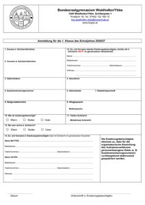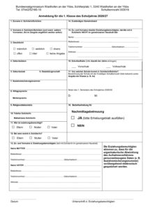 - Anmeldeformular 1. Klasse oder Anmeldeformular 5. Klasse